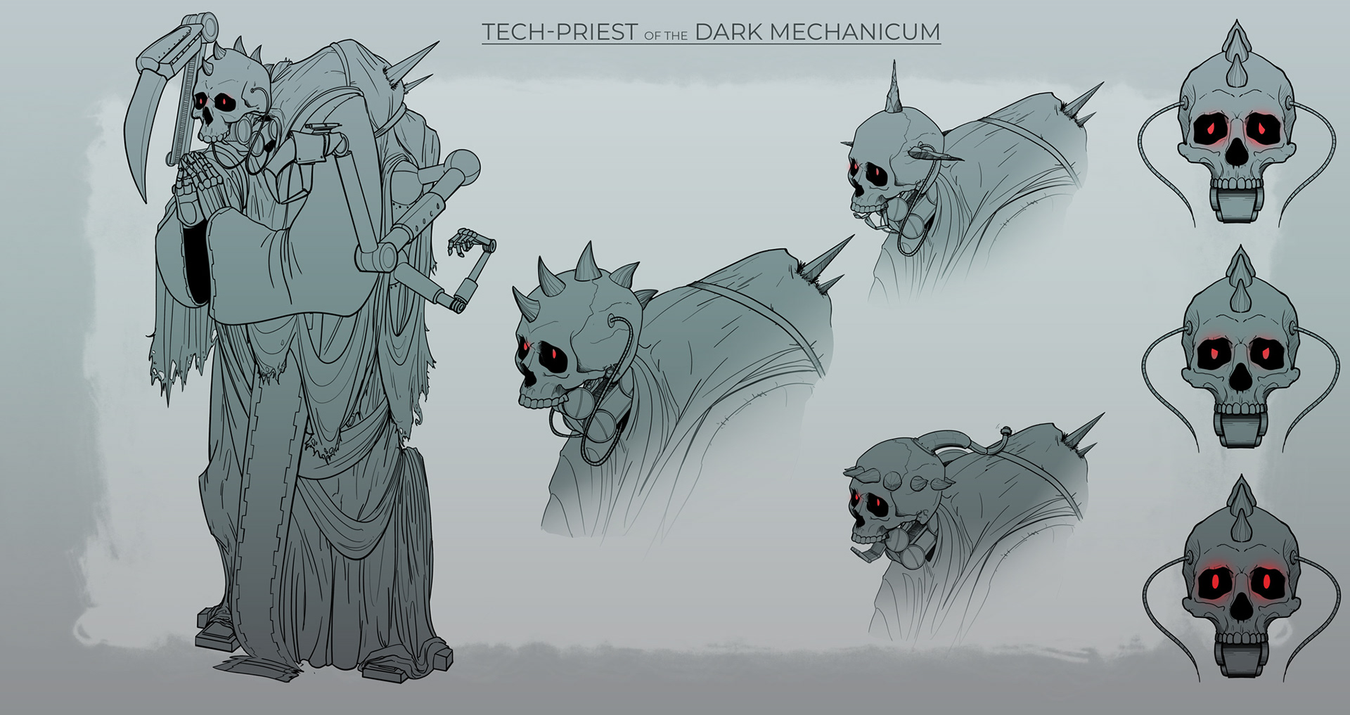 Dark Mechanicum character design concept by ace harman for a warhammer 40k webcomic project. Freelance design work.
